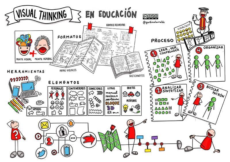 El Visual Thinking o pensamiento visual nace en 1969 con el psicólogo Rudolf Arheimen, entendiendo que todo pensamiento nace de un patrón visual que estructura los elementos que llegan a nuestra mente. Investigación y experiencia El día a día en el aula y por supuesto, gran cantidad de estudios avalan que se aprende y atiende muchísimo mas si presentas la temática a trabajar de una manera visual y no estática, que de manera verbal y monótona. Por ello nosotros llevamos acabo una serie de rutinas de pensamiento que hemos ligado al método Visual Thinking. Esta rutina la usamos muchísimo al acabar el proyecto y que cada alumno cree una parte de un cuento inventado en el momento y relacionado con conceptos aprendidos en la Unidad.