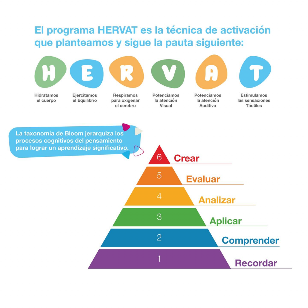 Los últimos avances en la neurociencia cognitiva están contribuyendo a entender mejor cómo la estimulación ambiental es capaz de influir en la actividad cerebral, no solo del adulto sino también del niño/a y del adolescente (Glannon, 2014). Hoy día tenemos clara la importancia de cómo una adecuada estimulación ambiental temprana, reglada, regular, diaria y sistemática con una determinada frecuencia, intensidad, repetición y sincronización de patrones estimulares sencillos induce el crecimiento dendrítico y aumenta el número de conexiones sinápticas entre las ya existentes. Todo ello mejora el desarrollo del cerebro hasta un nivel óptimo. El programa HERVAT trata de preparar distintos circuitos cerebrales para optimizar su acción y de transmitir hábitos “neurosaludables” Nosotros trabajamos el HERVAT siempre después de la relajación para fomentar la actividad y concentración para la última 1’5h de clase. https://unamaestramuyespecial.es/wp-content/uploads/2022/03/hervatVideo.mp4